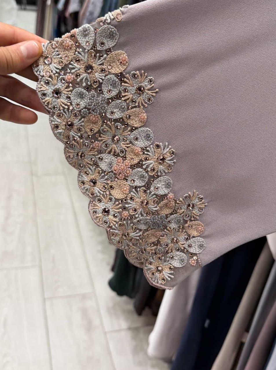 Return To ShopThis elegant abaya features delicately hand-embroidered floral sleeve detailing with fine thread work, sequins, and subtle bead embellishments. Crafted from premium soft-flowing fabric, it offers a graceful and refined silhouette.