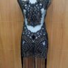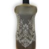 Embellishment: The surface features hand-applied crystal stones and beadwork arranged in a geometric lattice pattern, bordered with dense, leaf-inspired motifs along the edges. The symmetrical detailing and layered crystal accents reflect fine craftsmanship and couture-level finishing, ensuring a luxurious and eye-catching result.