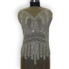 Style and Silhouette: The design is structured to contour the body with cascading rows of pearls arranged in soft, symmetrical drapes. The layered pattern enhances the natural curves while maintaining a refined and sophisticated look. The shoulder areas are delicately embellished, adding structure and balance to the fluid pearl detailing throughout the bodice.