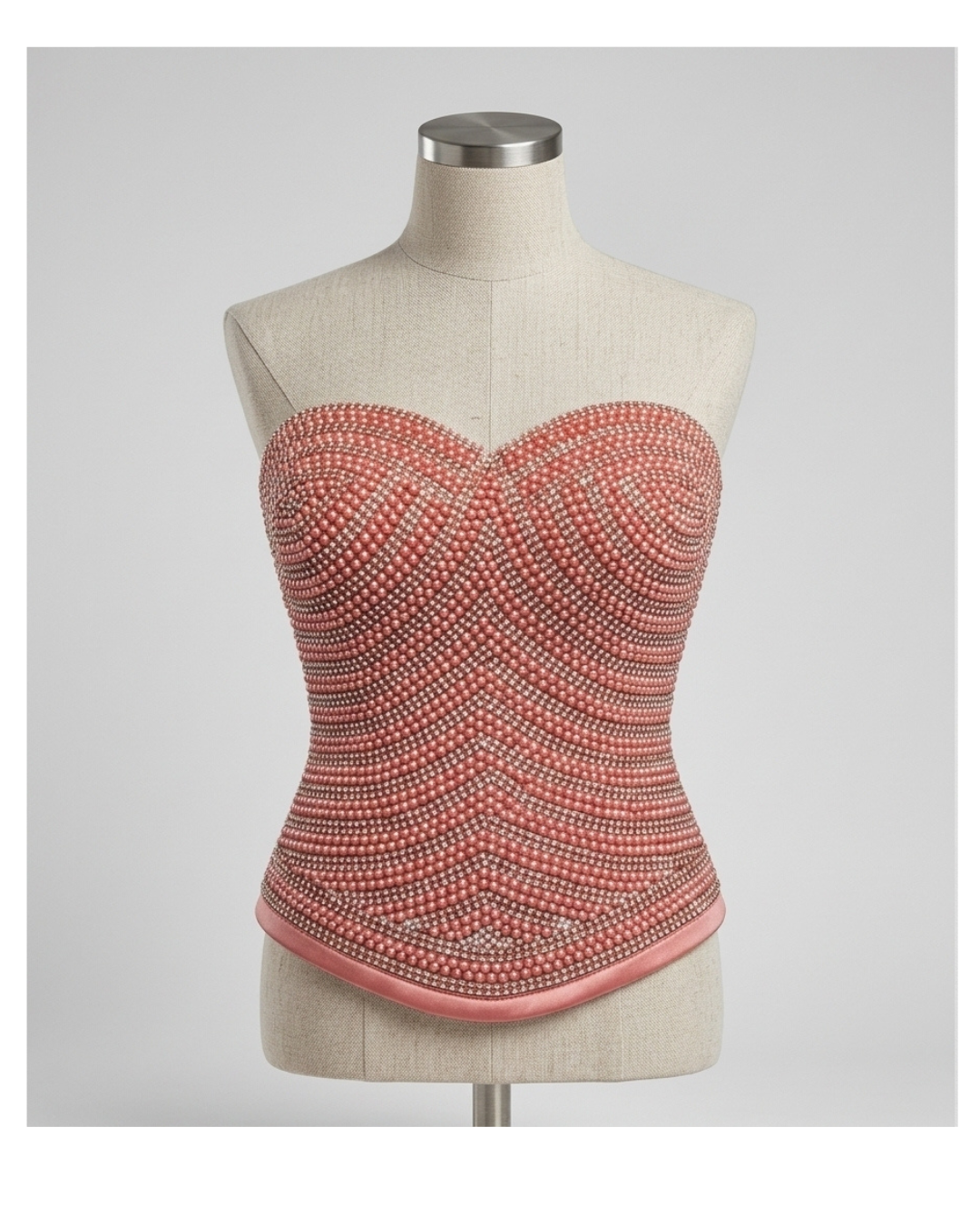The structured sweetheart shape enhances the silhouette, giving a flattering and well-defined look to the blouse or corset-style design. Each bead is carefully placed to create depth, shine, and texture, ensuring the panel stands out with a refined sparkle.