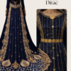 The long flowing silhouette enhances the movement of the fabric, making the dress look regal and effortless when worn. One of the most striking features is the heavily embroidered hem, filled with fine motifs and delicate detailing that adds a grand finishing touch.