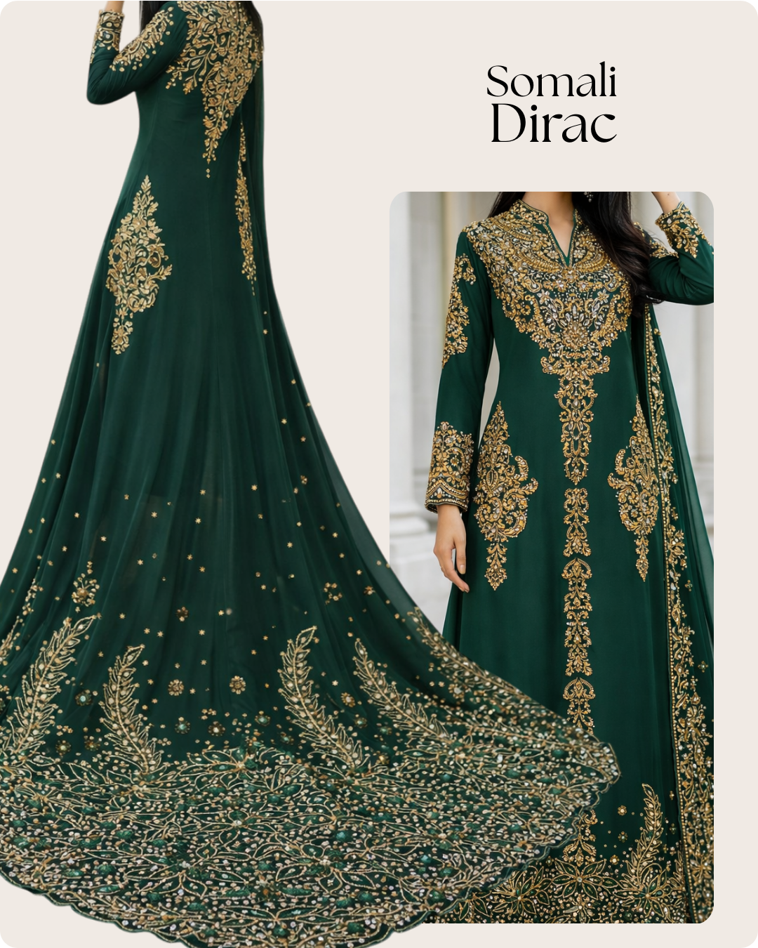 Perfect for weddings, festive gatherings, cultural events, and evening occasions, this Somali Dirac blends traditional craftsmanship with modern elegance. It is designed for women who want a timeless outfit that feels both graceful and statement-worthy.